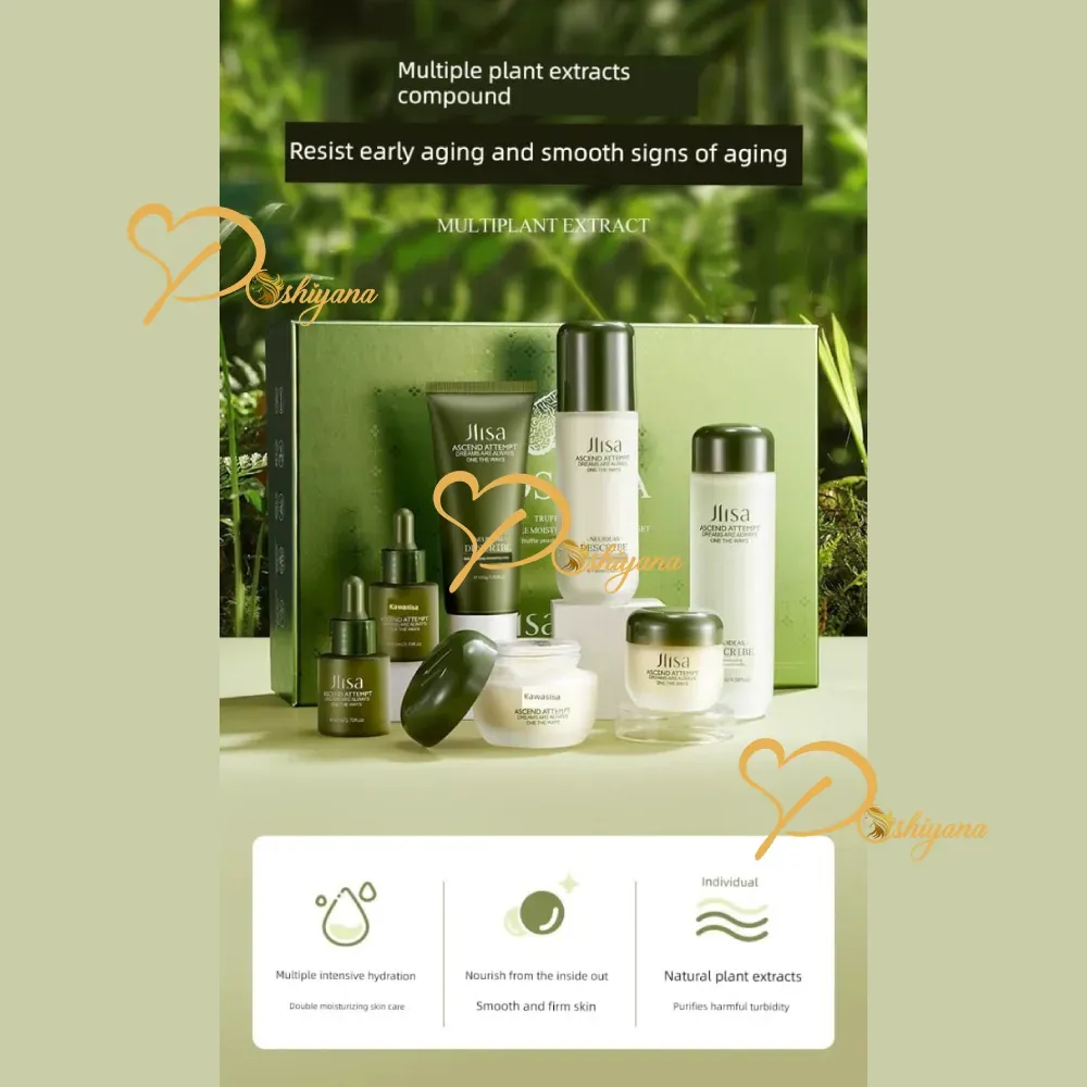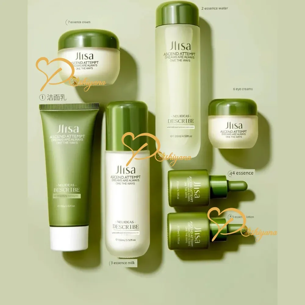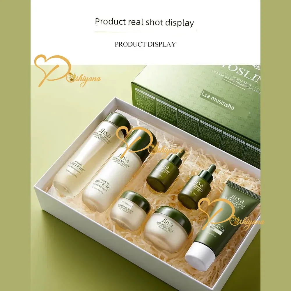 Jilsa 7-in-1 Skincare Gift Set A premium complete skincare collection featuring toner, essence, two serums, face cream, eye cream, and cleansing foam. Perfect for hydration, brightening, and daily skincare. Beautifully packed and ideal for gifting.